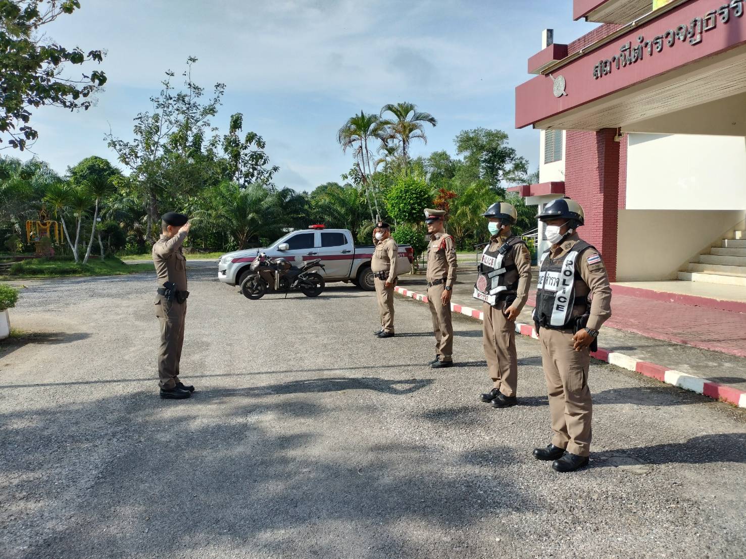 วันที่ 12 ต.ค..66 เวลา 08.30 พ.ต.ท.ชินราธร สุวัฒโน รอง ผกก.ป.สภ.รัษฎา พร้อมด้วย ร.ต.ท.สุรพล สงมา ร้อยเวร 20 ได้เรียกแถว ข้าราชการตำรวจ เข้าแถวเคารพธงชาติ กล่าวบทปลงใจ และอุดมคติตำรวจ ตรวจสอบอุปกรณ์ประจำรถยนต์