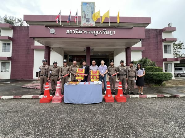 พ.ต.อ.อภิชัย กรอบเพชร รอง ผบก.ภ.จว.ตรัง รรท.ผกก.สภ.รัษฎา พ.ต.ท.ชินราธร สุวัฒโน รอง ผกก.ป สภ.รัษฎา และเจ้าหน้าที่งานจราจร สภ.รัษฎา ร่วมรับมอบอุปกรณ์งานจราจร กรวยสะท้อนแสง กระบองไฟ เสื้อสะท้อนแสง เพื่อใช้ในการปฎิบัติหน้าที่ จาก บริษัท กลางคุ้มครองผู้ประสบภัยจากรถ จำกัด ณ สภ.รัษฎา อำเภอรัษฎา จังหวัดตรัง