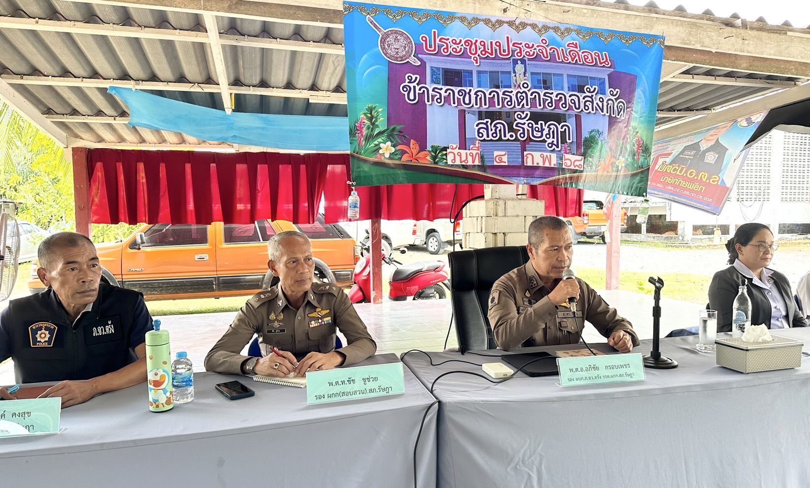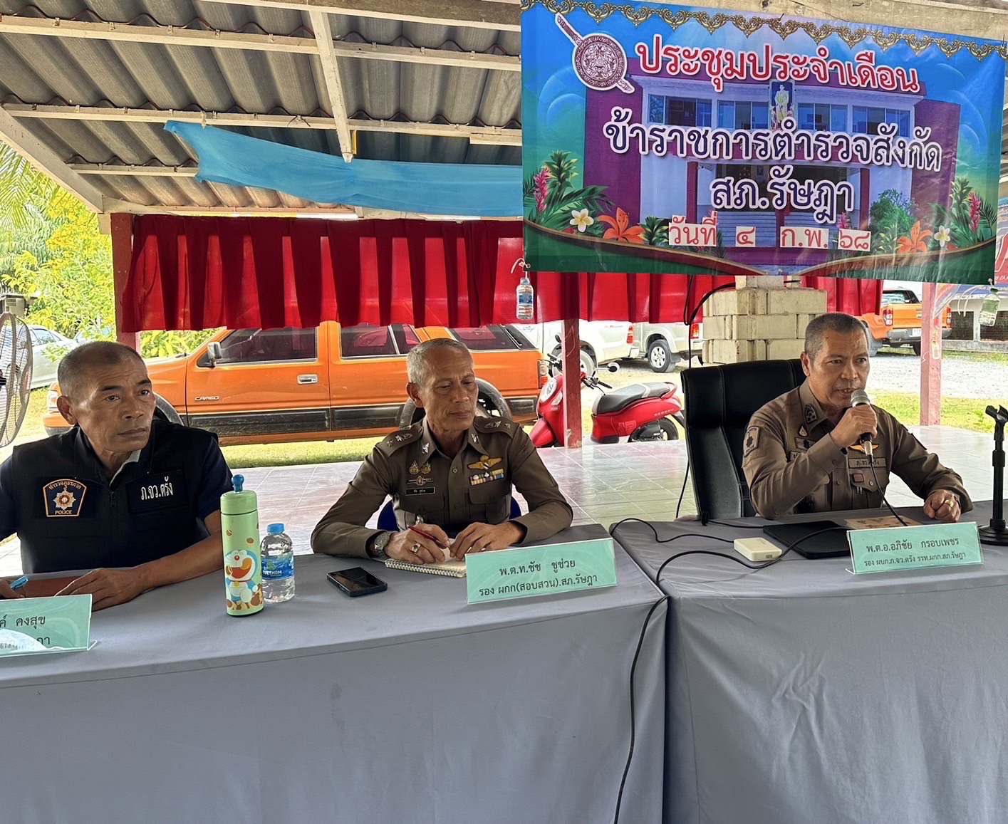 วันที่ 4 กุมภาพันธ์ 2568 เวลา 11.00 น. พ.ต.อ.อภิชัย กรอบเพชร รอง ผบก.ภ.จว.ตรัง รรท.ผกก.สภ.รัษฎา เป็นประธานการประชุมประจำเดือนกุมภาพันธ์ พร้อมทั้งมอบนโยบายแก่ข้าราชการตำรวจ สภ.รัษฎา ณ ห้องประชุมชั่วคราว สภ.รัษฎา อำเภอรัษฎา จังหวัดตรัง