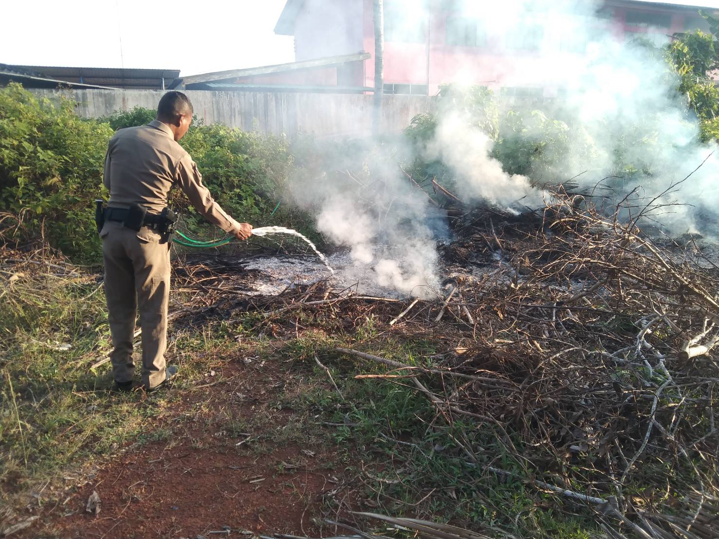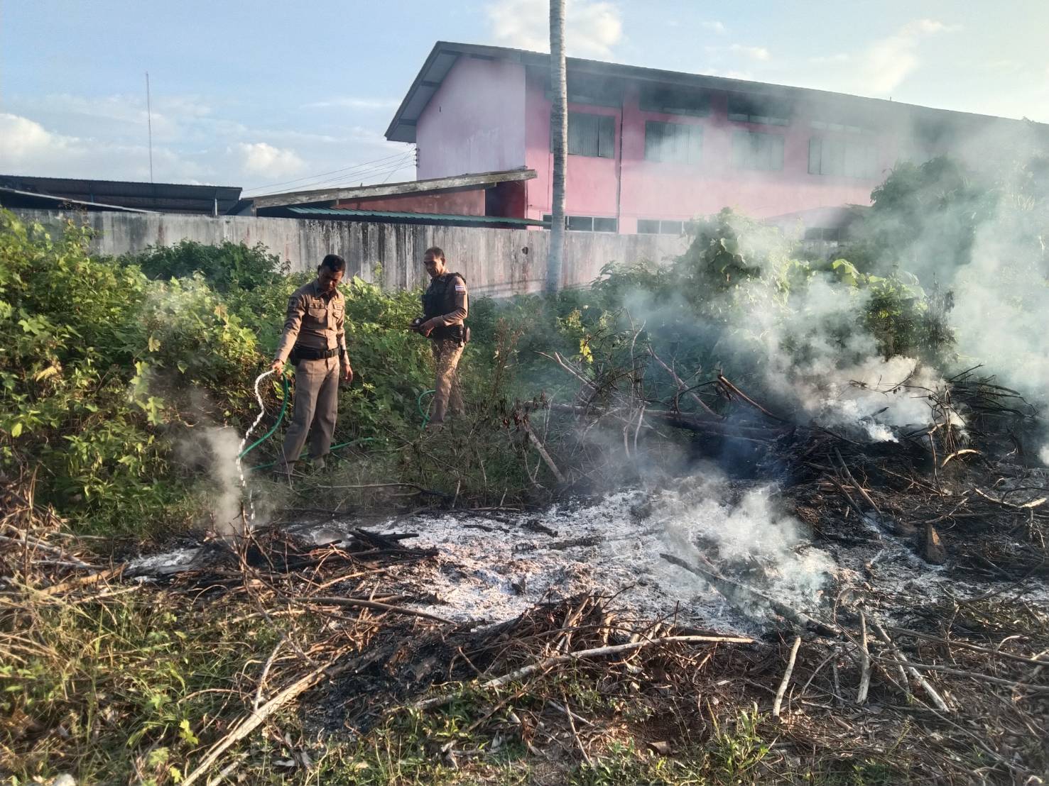 วันที่ 30 มี.ค.68 เวลาประมาณ 17.50 น. ขณะที่่ร้อยเวรป้องกันปราบปรามออกตรวจพื้นที่ในเขตพื้นที่รับผิดชอบ ได้ตรวจสอบพบมีเพลิงไหม้เศษไม้บริเวณริมถนน จึงร่วมกับชุดสายตรวจ ช่วยกันเร่งดับเพลิงไม่ให้ลุกลามไปบริเวณกว้าง ป้องกันมิให้ประชาชนได้รับอันตราย