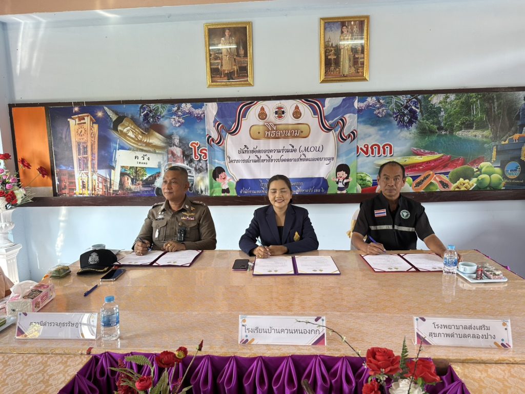 ร่วมพิธีลงนามบันทึกข้อตกลงความร่วมมือ (MOU) “โครงการสถานศึกษาสีขาว” ปลอดยาเสพติดและอบายมุข โรงเรียนบ้านควนหนองกกและภาคีเครือข่ายอำเภอรัษฎา
