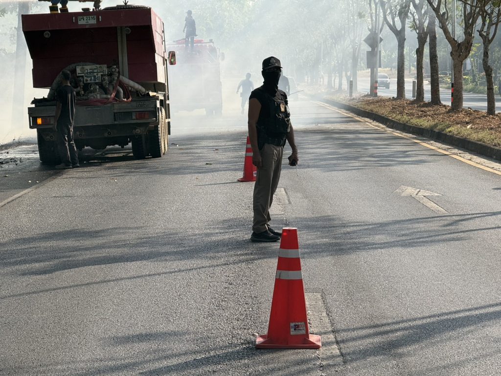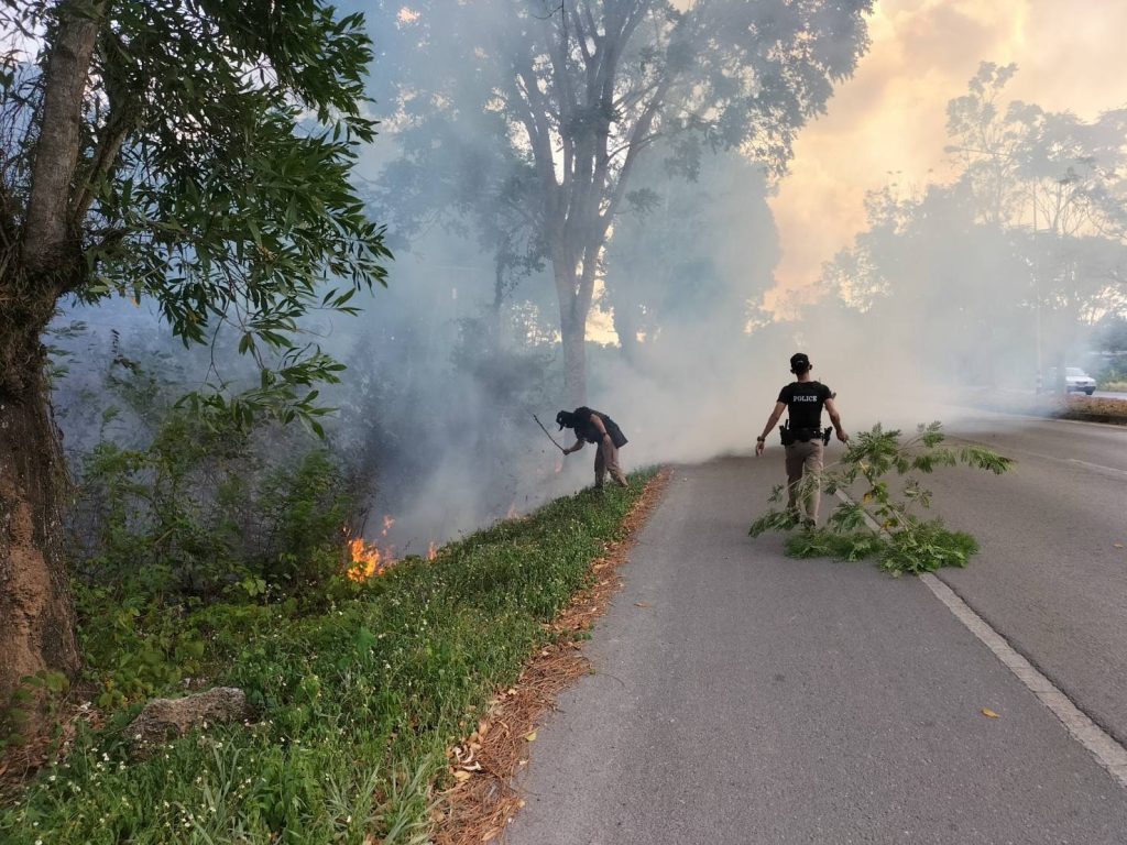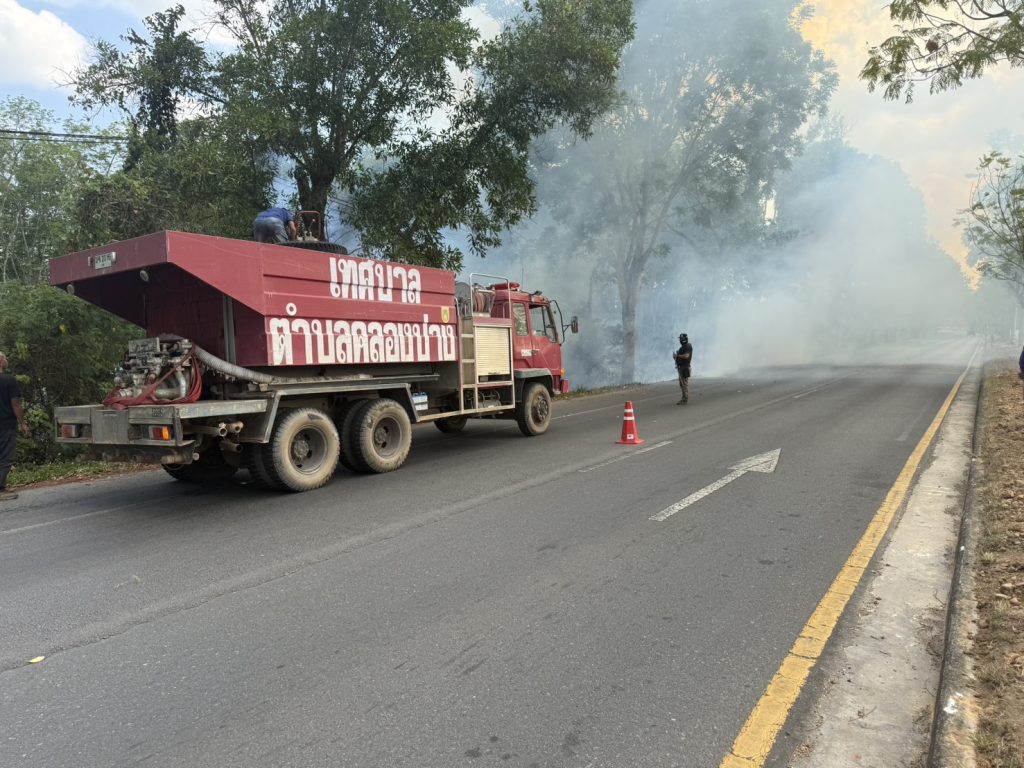 ว.4 เหตุไฟไหม้ริมทางถนนสาย 403 ไม่ให้ลุกลามไปบริเวณกว้าง ป้องกันมิให้ประชาชนได้รับอันตราย