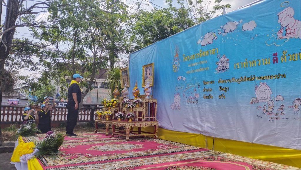 พ.ต.อ.จิรศักดิ์ ฉวีนิล ผกก.สภ.รัษฎา พร้อมด้วยข้าราชการตำรวจ สภ.รัษฎาชุดจิตอาสา ร่วมกิจกรรมจิตอาสาพัฒนาในวันสำคัญของชาติไทย ประจำปีงบประมาณ พ.ศ.๒๕๖๙ เนื่องในวันคล้ายวันพระราชสมภพสมเด็จพระกนิษฐาธิราชเจ้า กรมสมเด็จพระเทพรัตนราชสุดาฯสยามบรมราชกุมารี ณ บริเวณรอบๆที่ทำการองค์การบริหารส่วนตำบลคลองปาง หมู่ที่ ๕ ตำบลคลองปาง อำเภอรัษฎา จังหวัดตรัง